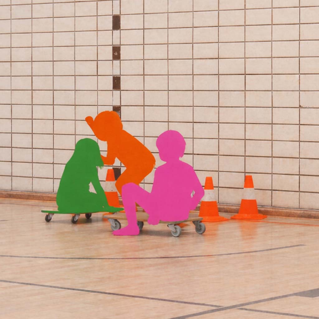 Material: 1–2 Rollbretter, ggf. eine kleine Turnmatte oder 2-4 Pylonen