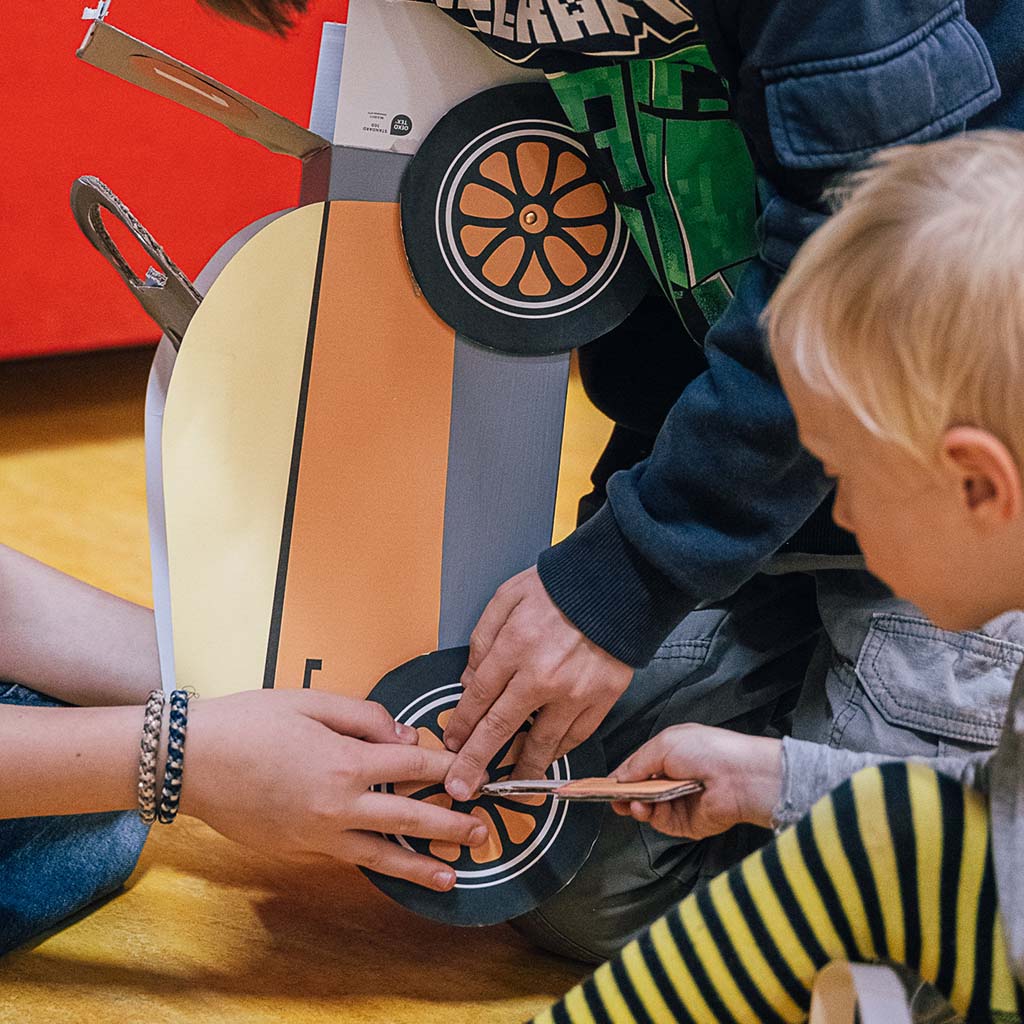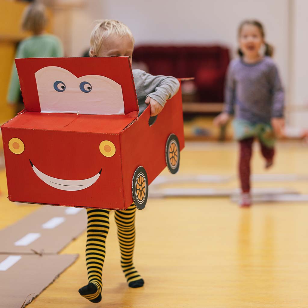 - Autos basteln: Gestalten Sie kleine Autos aus Klopapierrollen, Dosen oder Kartons – oder bereiten Sie für die Kinder große Rennautos zum Hineinschlüpfen und Losdüsen vor.