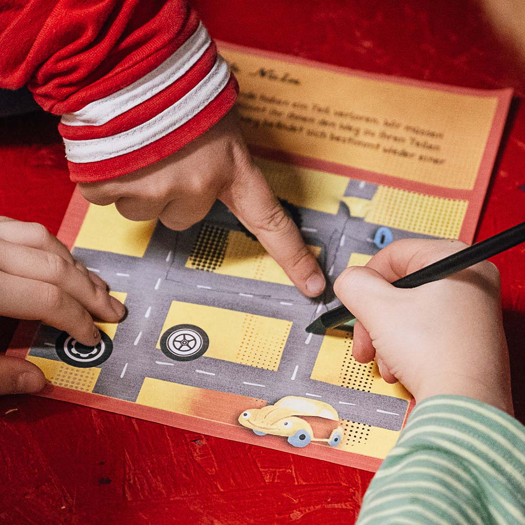 Sie können die Autorennen-Schatzsuche direkt mit den beiliegenden Materialien spielen – oder sie mit unseren Bastelideen und zusätzlichen Druckvorlagen zu einem noch größeren Auto-Abenteuer ausbauen.