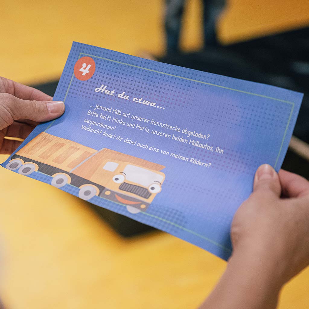 - 5 Rätsel, bei denen die Kinder nach und nach die „Rennstrecke“ vorbereiten.