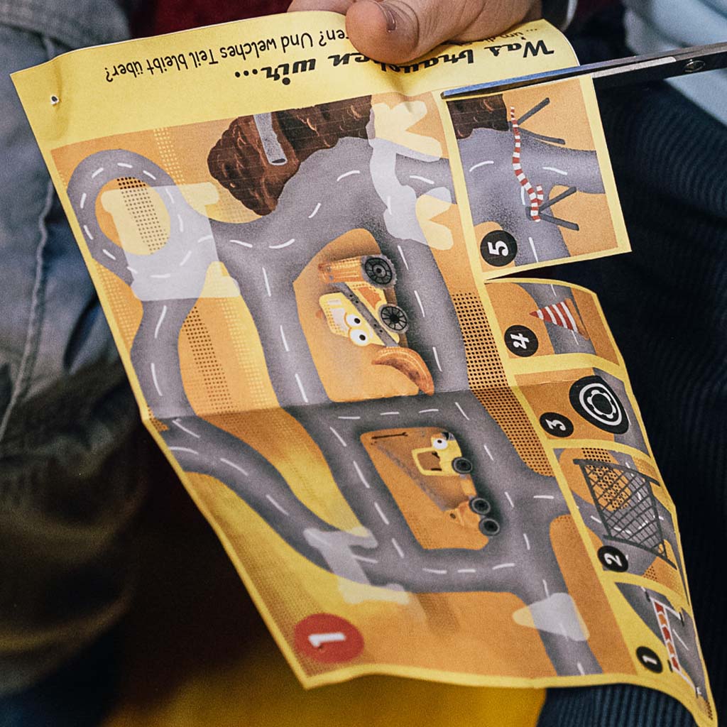 - Werkstatt-Aktion: Für die Reparatur-Station können Sie für die kleinen Mechaniker*innen Werkzeug und einen Werkzeugkasten aus Pappe basteln.