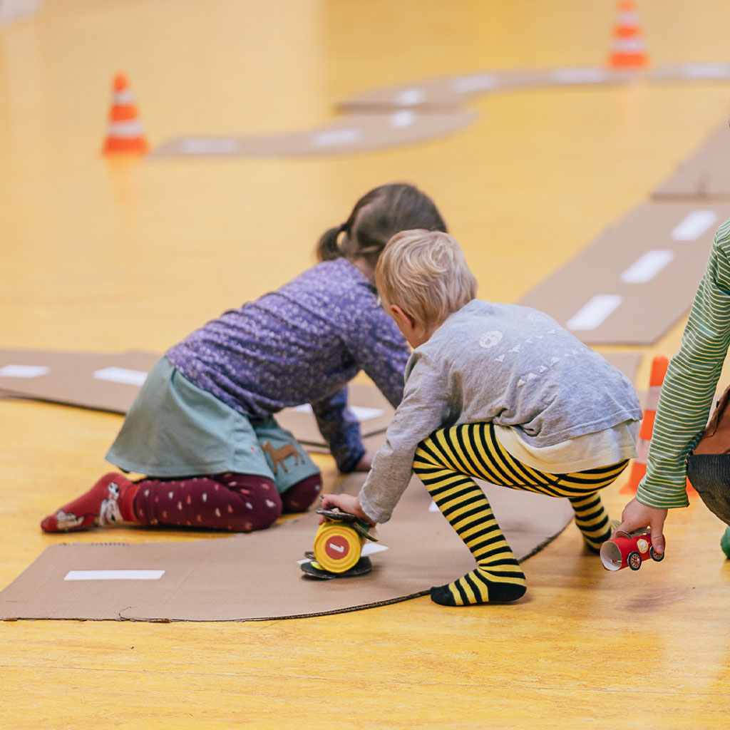 Die Rennbahn können Sie gemeinsam mit den Kindern bei unserem Auto-Party-Würfelspiel aufbauen.