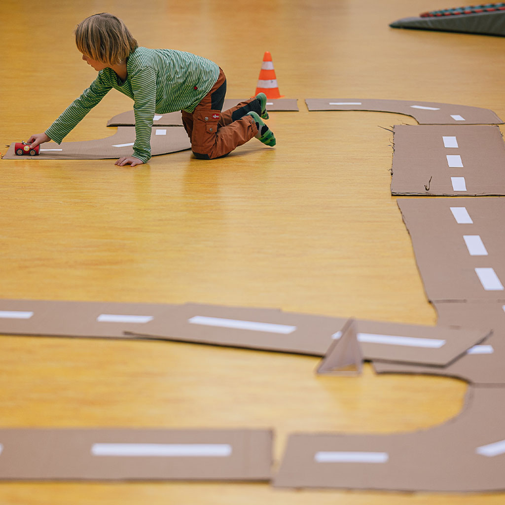 Zur Autorennen-SchatzsucheVariante 2: Eine „große“ Rennbahn aus Pappe basteln – Eine Upcycling-Idee