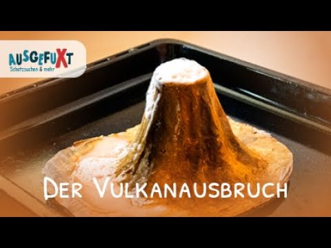 Jetzt muss der Vulkan natürlich noch ausbrechen. Für den Vulkanausbruch benötigen Sie Essig und Backpulver. Wenn Sie den Vulkan bei einem Kindergeburtstag nutzen, können Sie ihn schon einmal vorbereiten: Gießen Sie Essig hinein und stellen Sie den Vulkan an eine prominente Stelle (es sei denn, der Vulkan ist ein Versteck bei einer Schatzsuche). Die Kinder bekommen dann z. B. eine Aufgabe und müssen diese bewältigen „bevor der Vulkan ausbricht“. Wenn es soweit ist, streuen Sie das Backpulver heimlich in den Vulkan.
