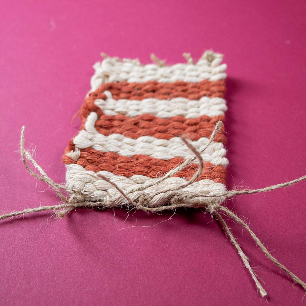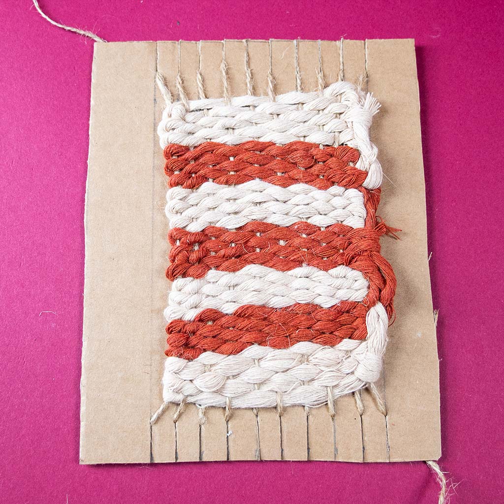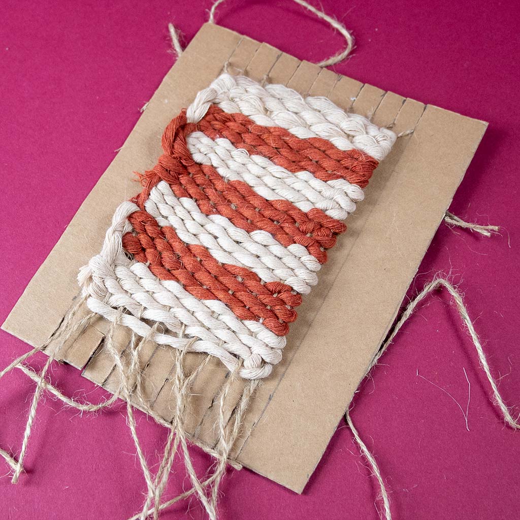 Nun können Sie die Webarbeit vorsichtig von der Pappe lösen.