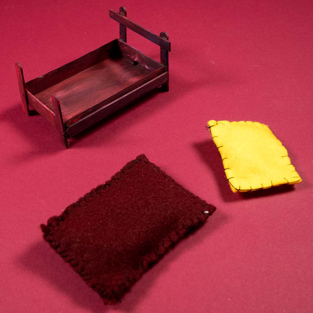 Ohne Kissen und Matratze ist das Bett noch recht unbequem für die Wichtel. Deshalb basteln wir diese als nächstes.
